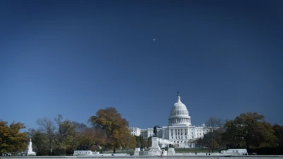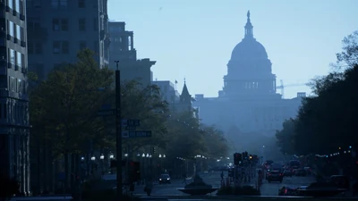 He sees the interrogator on a monitor, getting to his feet, so finds a ladder and climbs to the surface. He emerges into a wood, and runs until he comes to a paved surface. When he crosses it, an airplane passes overhead and he sees a sign saying reading Ronald Reagan Washington National Airport. As the mist clears, the Capital Building is visible in the distance.