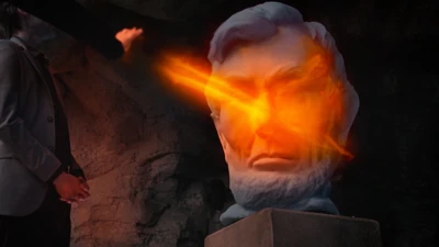 Crane makes his way into the city and heads for the Lincoln Memorial. At the same time, Diana and Eric arrive at the Memorial and go inside. Someone has cut the head off the statue of Lincoln. Eric goes to check the substructure while Diana sees a glowing green crack on the side of the statue that fades and disappears. She calls Eric but doesn't get through. Eric has found a figure standing alone in the substructure and tells him that the area is off-limits.