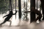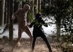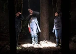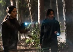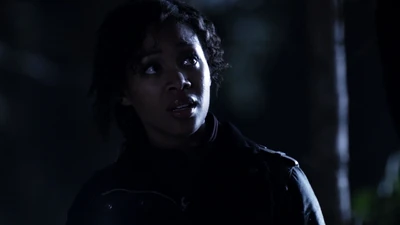 The team heads through the woods and Abbie realizes that the Verslinder is following them. Sophie wants to warn Daniel, but Abbie points out that every time that she does, someone’s life is ruined. She calls Daniel over and tells Sophie that she’ll deal with the Verslinder while Sophie and Daniel go ahead. When Daniel comes back, Abbie says that she needs a break and tells the others to go on ahead. As Abbie hunts for the Verslinder, she remembers the symbol and almost leaving Ichabod to die. She then turns and intercepts the Verslinder as it lunges at her, cutting off its arm with her knife. It regrows it in a matter of seconds, and then throws Abbie to the ground and prepares to kill her. Sophie arrive and beats it off with her crude spear, and it runs away.