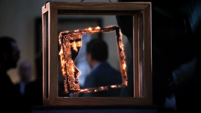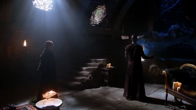 At the auction, the bidding begins. Jenny bids $100,000, but someone else bids $200,000. She realizes that Hans is bidding against her, and Joe enters a bid for $1 million. Hans passes and Joe wins the bid. Jenny goes to close out and Joe keeps an eye on the fragment. As he touches the case, Joe’s eyes turn white for a moment. Jenny covers the case and picks it up, and leaves with Joe. Pandora checks the scrying well and sees Jenny and Joe claim the fragment.