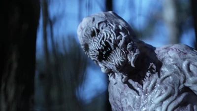 Abbie and Sophie go hunting for the Verslinder, and Sophie points out that the creature only attacks when its target is isolated. They split up and the Verslinder attacks Abbie. She spears it through the chest, but it quickly heals the wound. It shoves her away and runs off in Sophie’s direction. Abbie yells a warning, and Sophie manages to throw her spear into the creature. It pulls it out and attacks her, but Abbie arrives and attacks it. As it closes in on her, Crane steps out of the darkness and shoots the Verslinder. He shoots it again and Abbie stabs it. The antibiotic causes it to disintegrate,
