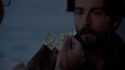 Crane, meanwhile, meets with Cranston, who is intrigued by the symbol. The professor notes that it is actually two pieces, and splits it apart, surprising Crane. Cranston steps outside to take a call, and Crane remembers the tablet he brought back to the U.S. It splits apart as well, and Crane confirms that there is a second inscription of the symbol on the inside of each part. When the tablet pulls each symbol piece into the indentation, he gets a vision of Abbie fighting the Verslinder. Cranston returns and Crane tells him that his partner is in trouble, and realizes that he has no idea where she is.