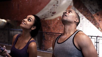 Abbie climbs a rock face and tries to pull herself up. She insists that she can do it, and then continues up, reaching the top and grabbing the flag. Jenny congratulates her on her moves and they drop back down, and Abbie says that Crane has been helping her with some behavior modification techniques.