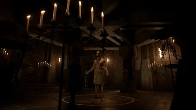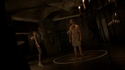 At the Archive, Jobe warns Jenny that the wards won't hold her forever. She promises to find his weakness and shoots him in the chest with a crossbow bolt. Jobe casually pulls it out and realizes that Jenny is experienced with demons, sensing that a demon has invaded her. Jenny remembers when she was possessed, and throws a knife at Jobe. He catches it and Jenny says that he can't goad her into making a mistake. She figures that with Malcolm dead, he's beaten, Jobe doesn't think Malcolm is dead.