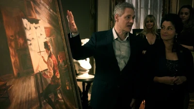 The couple then examines the painting Grant was working on, it was a self portrait by a man called James Colby. Colby it appears, is the murderer from Abigail Adam's investigation, trapped in his own painting, a man who is able to leave the painting at will to kill his victims and drain their blood, so he can complete the inverted cross and his resurrection. They learn from the runes on the frame, that Abigail Adams had discovered Colby was the murderer, and had allowed herself to be captured so she could trap him inside the painting. Crane and Katrina then enter the painting and are able to rescue society member, Miller, and escape. When Colby then completes his resurrection and leaves the painting, Abbie arrives in time to shoot him, and then shoots the painting at Crane's warning, and kills Colby.